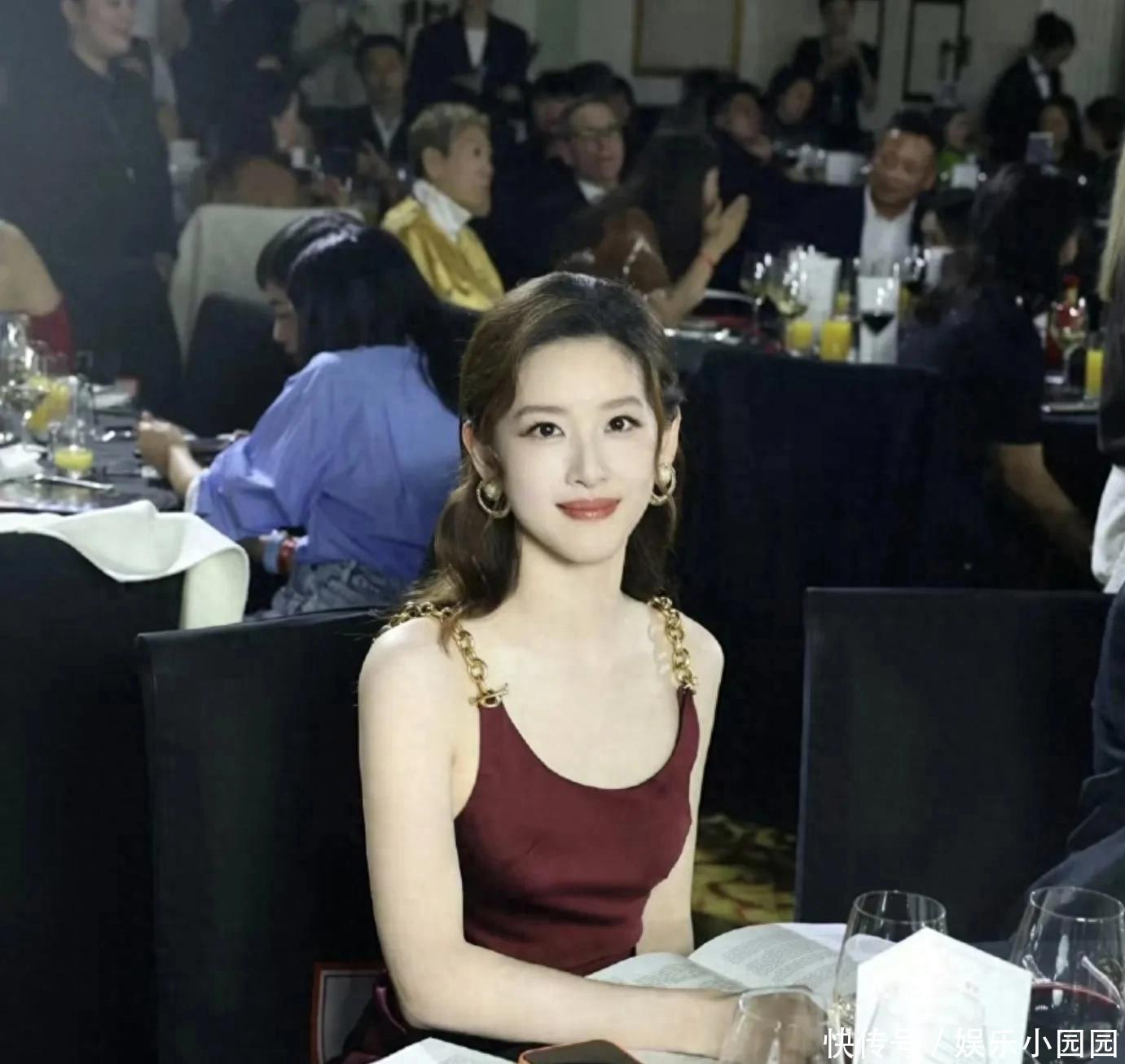 这一夜,章泽天身穿酒红色吊带长裙,搭配金色耳环,半扎马尾发型,既优雅而又知性,明艳贵气,皮肤白皙透亮